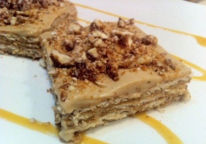 - يغمس البسكويت في النسكافيه مع الحليب ويرص في الصينية، ثم يوضع خليط النسكافيه ثم طبقات البسكويت، وهكذا حتى أربع طبقات.