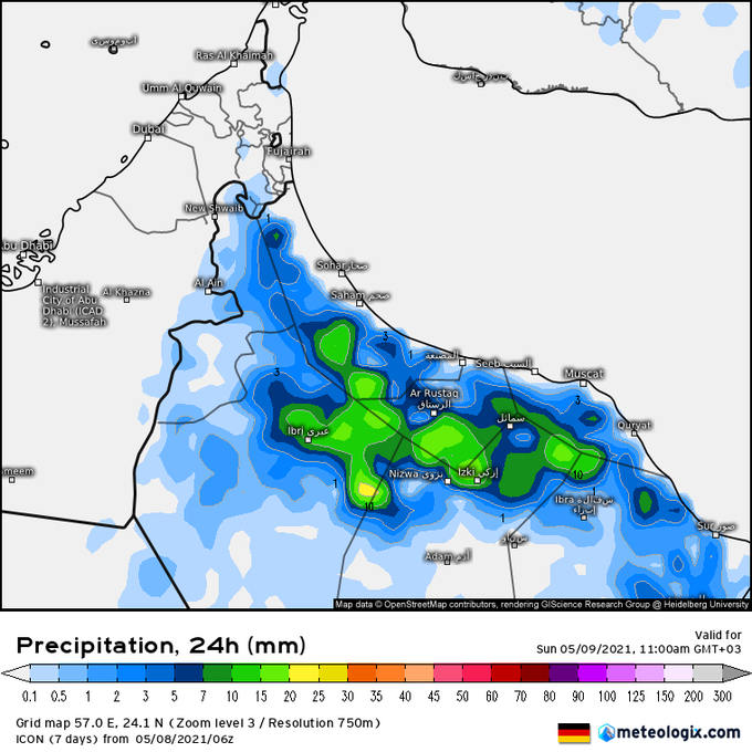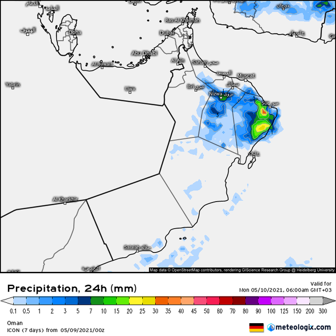 تحديث صباح اليوم من نموذج الألمانيالتوقعات الأمطار التراكمية خلال 24ساعة القادمتحديث مبشر بالخيرات مساء اليوم على السلطنة يجب أخذ الحيطة والحذر الله يحفظ للجميع