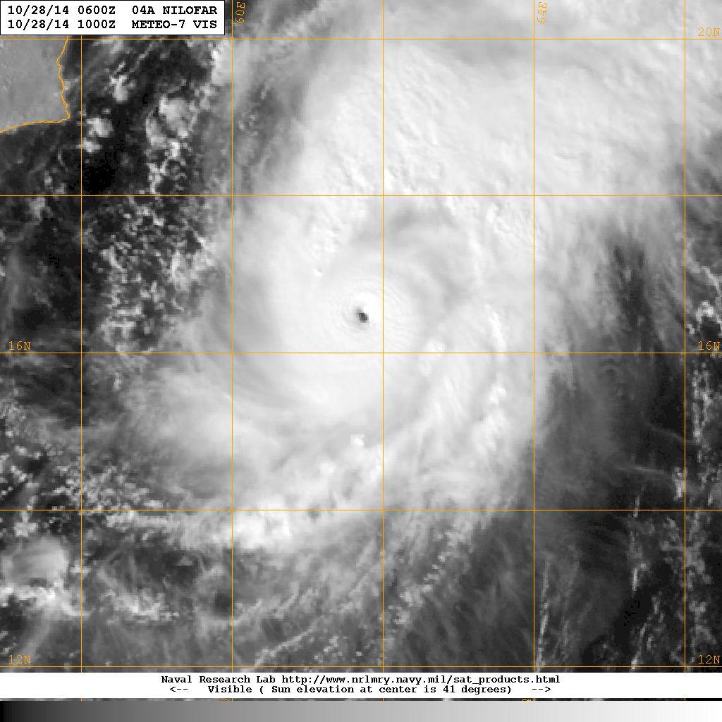 * عين الأعصار المداري #نيلوفار الذي يصنف من الدرجة الثانية بسرعة 90 عقدة ويتوقع تطوره الى الدرجة الثالثة ..والله أعلم