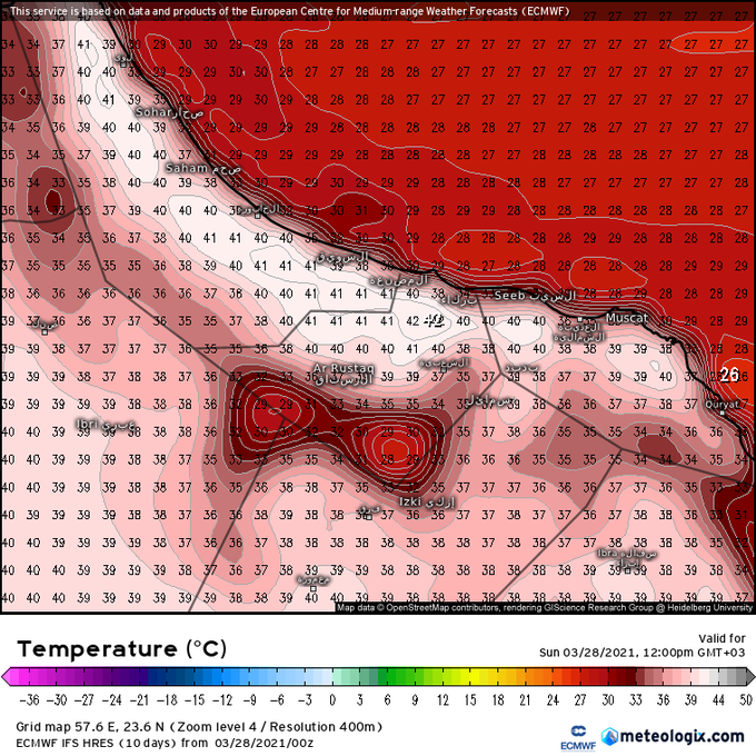 اخر تحديثنلاحظ درجات الحرارة ظهر اليوم على جبال الحجر العمانية