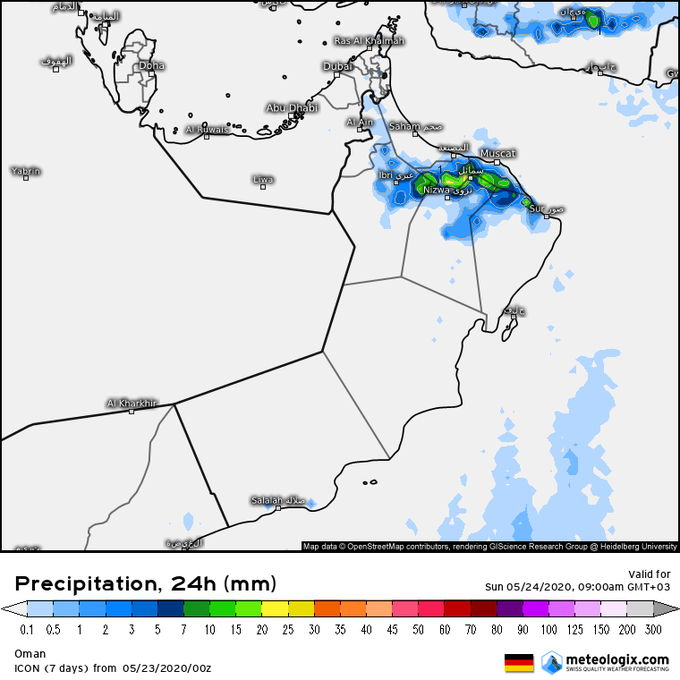 السلام عليكم ورحمة الله وبركاتهتحديث مبشر من نموذج الألمانييتوقع نشاط جيد التكونات المحلية الماطرة مساء اليوم على جبال الحجر العمانية الحمدلله رب العالمين