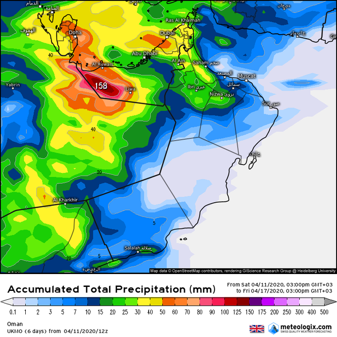 تحديث صباح اليوم من نموذج الألمانيالتوقعات الامطار التراكمية خلال 24ساعة القادمة على السلطنةالحمدلله رب العالمين