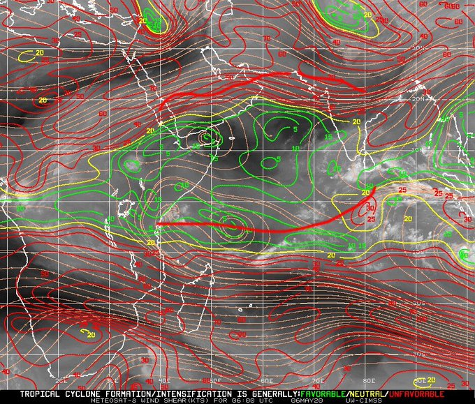 اخر تحديثنأخذ نظره على خريطة رياح القص الأن في بحر العربالخطين الأصفر والأخضر رياح القص منخفضة ومناسبة التتطور اي نشاط مداري والخط الأحمر رياح القص عاليه وغير مناسبه التتطور اي نشاط مداري الله أعلم