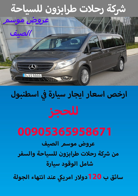 استئجار سيارة مع سائق في اسطنبول يسر شركة رحلات طرابزون بان تقدم لكم عروضها لموسم الصيف بافضل الاسعارلدينا مجموعة السيارات الحديثة والفانات الخاصة مع سائقين عرب و أتراك على دراية تامة بأحياء وأرياف اسطنبول وجميع الأماكن السياحية القريبة منها مثل: بورصه ......