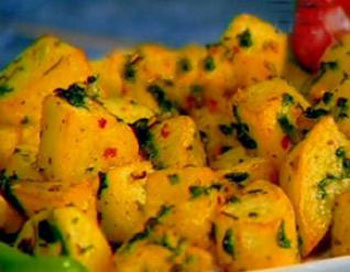 • نقلب البطاطا والبهارات مع الكزبرة حتى يختلطوا جيدا.