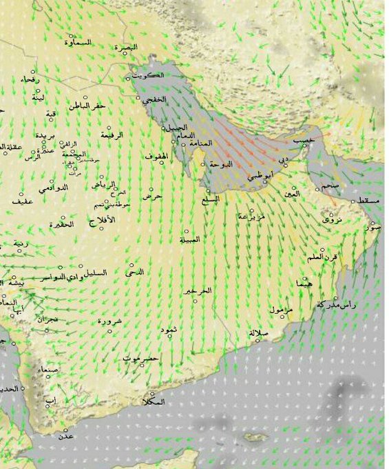 *فرص مبشرة على السلطنة بمشيئة الله خلال الأيام القادمة وإجازة نهاية هذا الأسبوع لتدفق السحب قد تؤدي لهطول الأمطار المتفرقة بإذن الله.