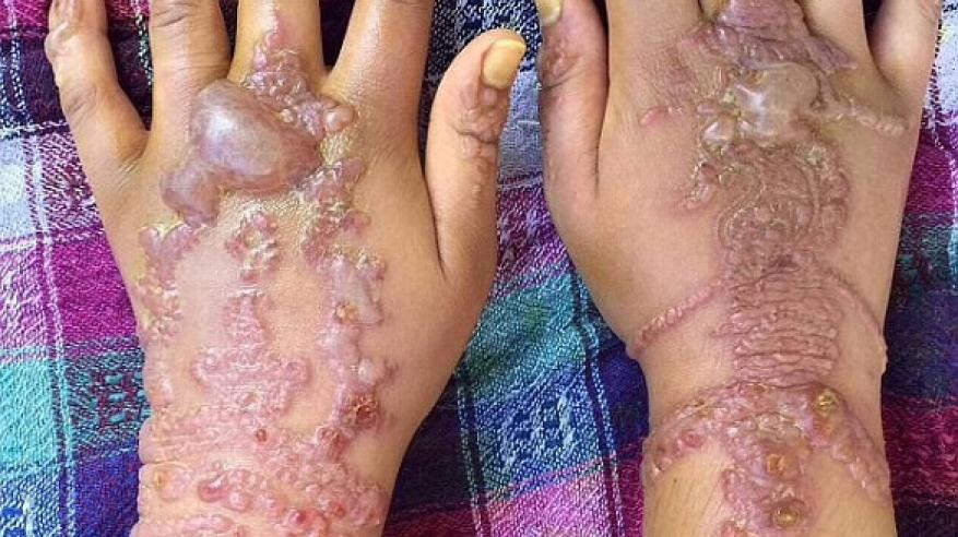 تحولت حياة فتاة بريطانية إلى مأساة صحية بعد استخدامها حناء مغربية أثناء قضائها عطلة مع زوجها ووالدتها وبعض أقاربها في المغرب، حيث تعاني صوفي آكيس البالغة من العمر 22 عاماً حالياً من التهابات وتقرحات شديدة في الجلد، بعدما قررت وضع حناء سوداء على يديها.