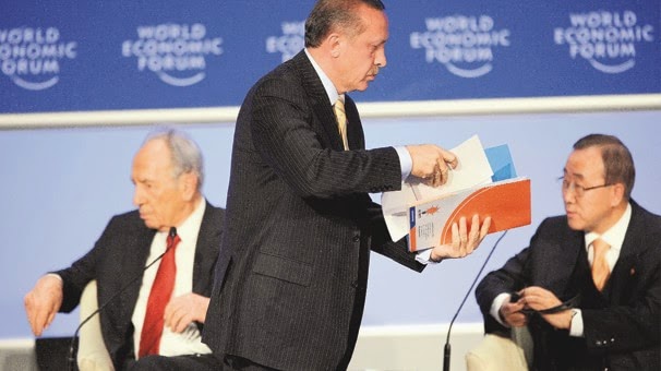 قام رئيس دولة تركيا طيب أردوغان بالانسحاب من مؤثمر دافوس, بسبب عدم منحه الوقت الكافي له ليكمل رده على الرئيس الاسرائيلي سيمون الذي تساءل عن سبب قتل الأطفال في غزة.